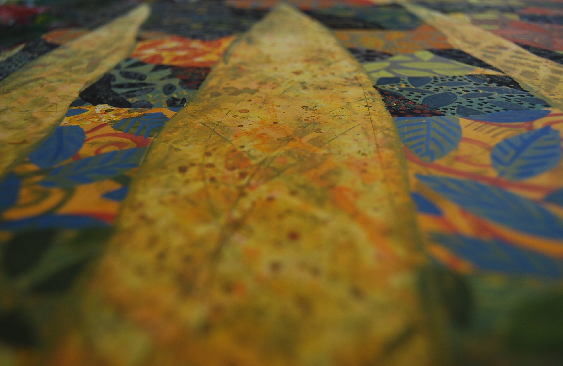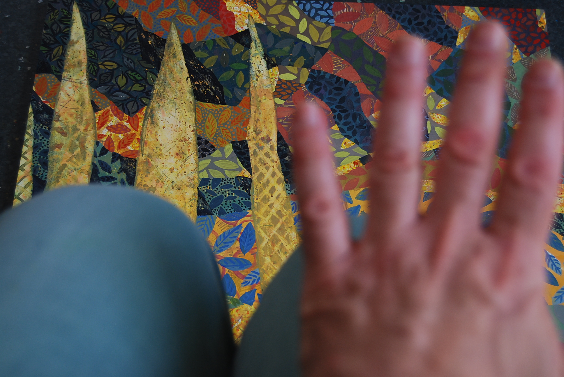 The artistic challenge is to create a single cohesive composition, in which each panel also works a an independent painting.