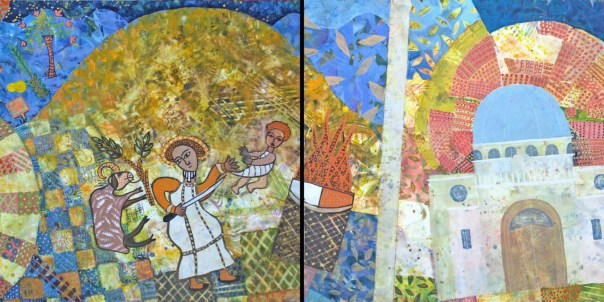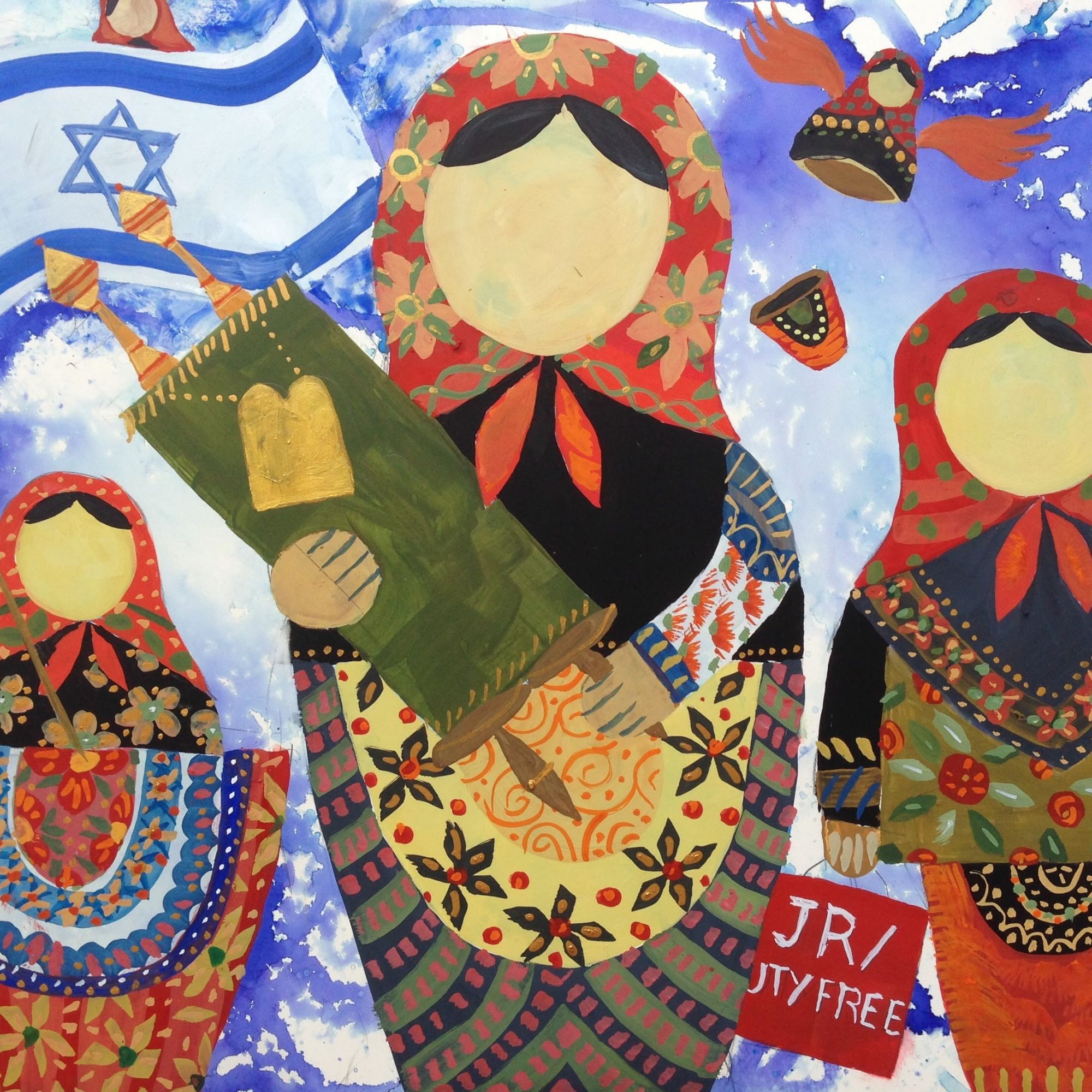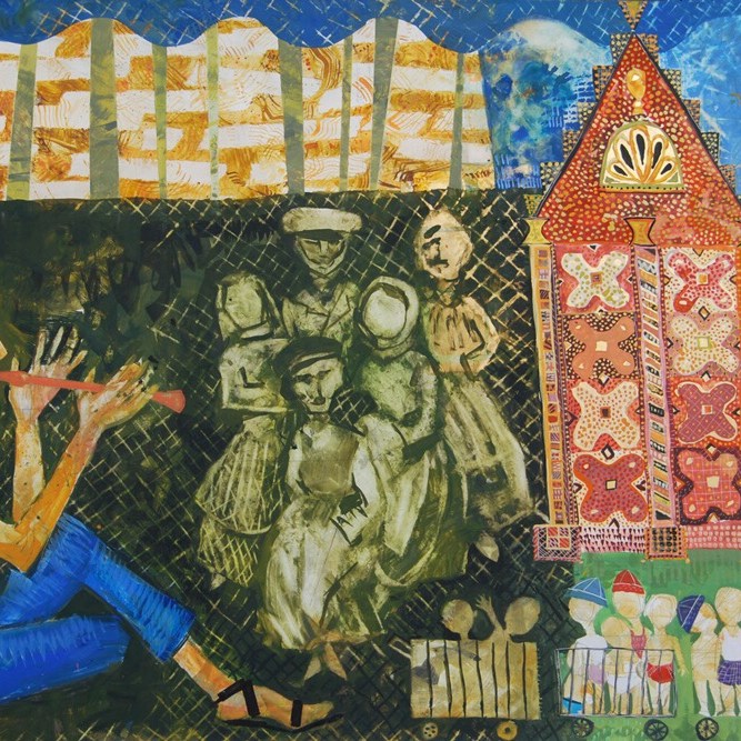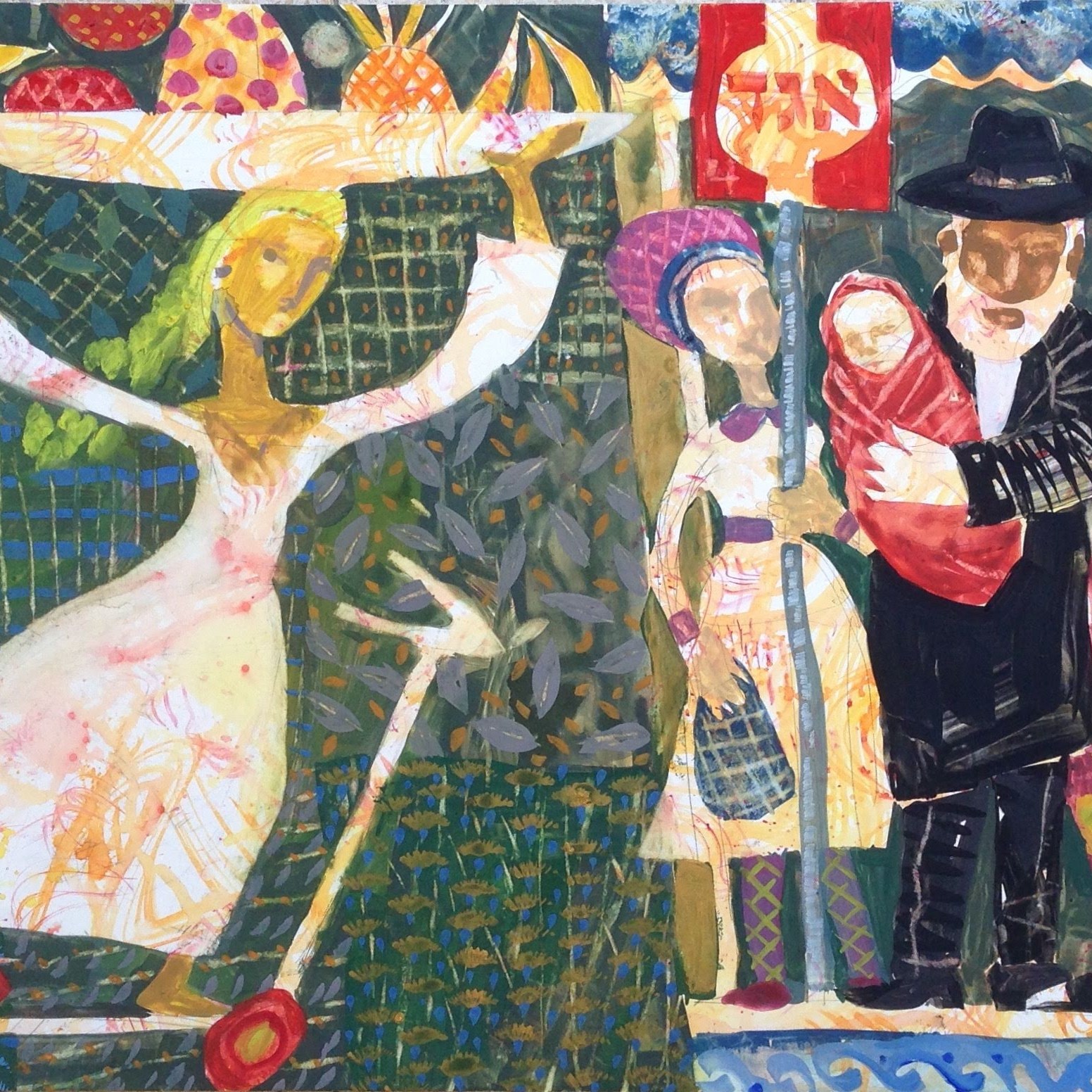 Each of these paintings was inspired lyrics of Israeli songs, written between the 1930s and 2019. Some images relate directly to the words, others are deliberately taken out of context. Most of the songs are familiar, part of the cannon taught to school children. The songs and the images often elicit an “Ahhh, Uhuh” when revealed, as they touch deep memories in our biographies.