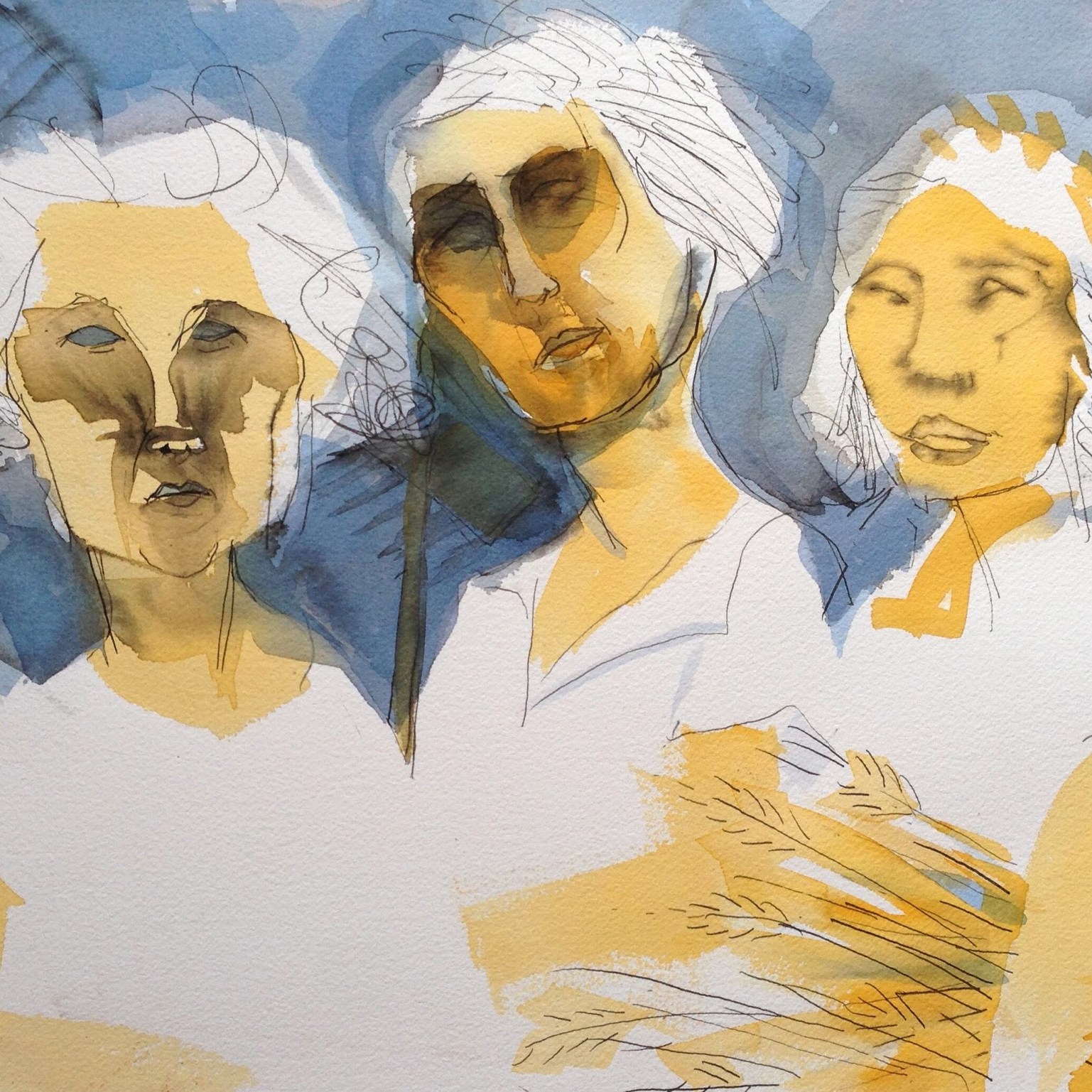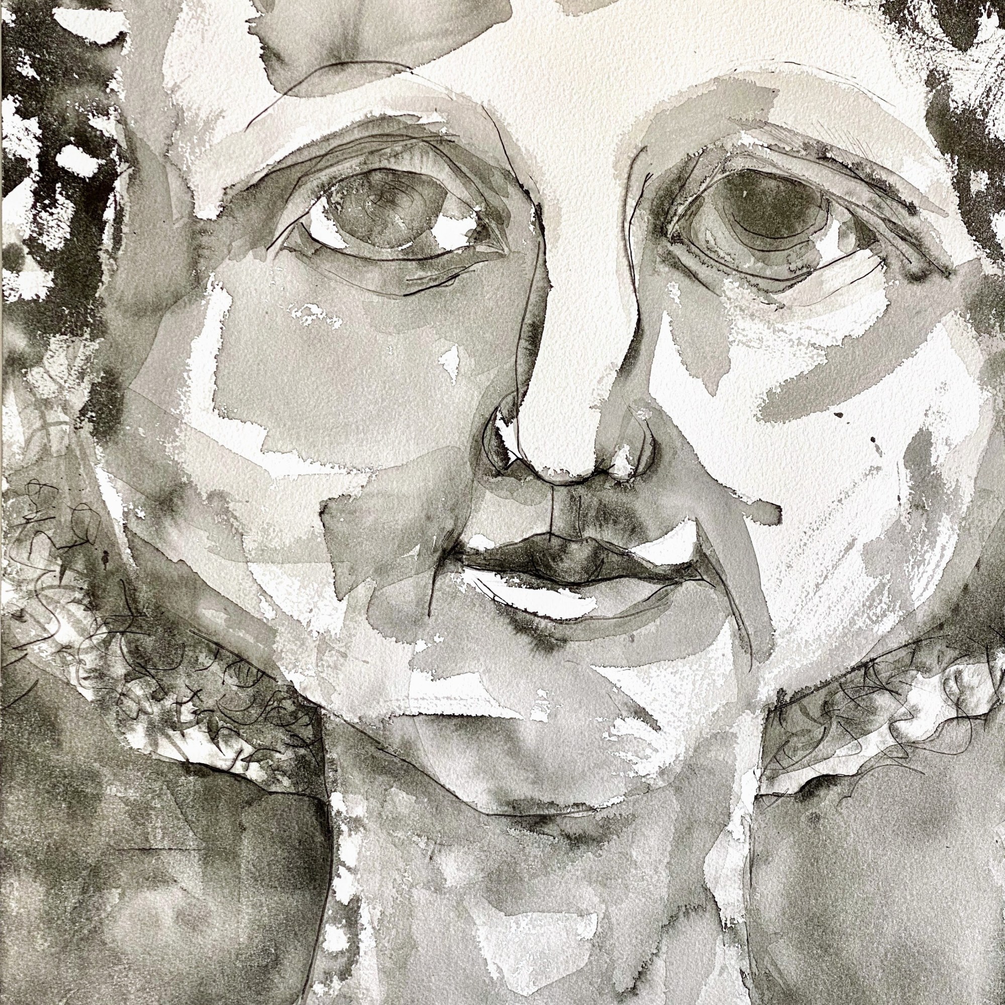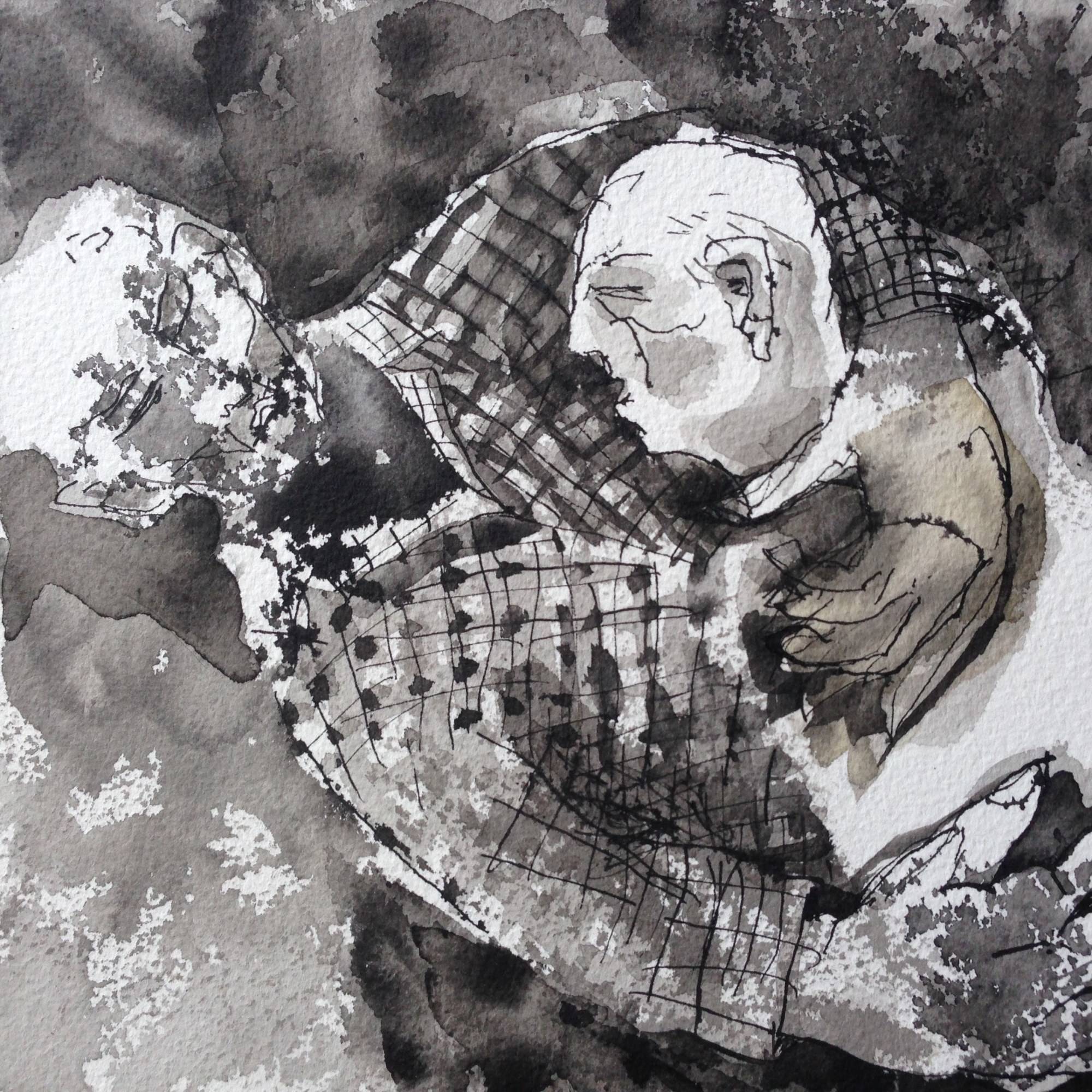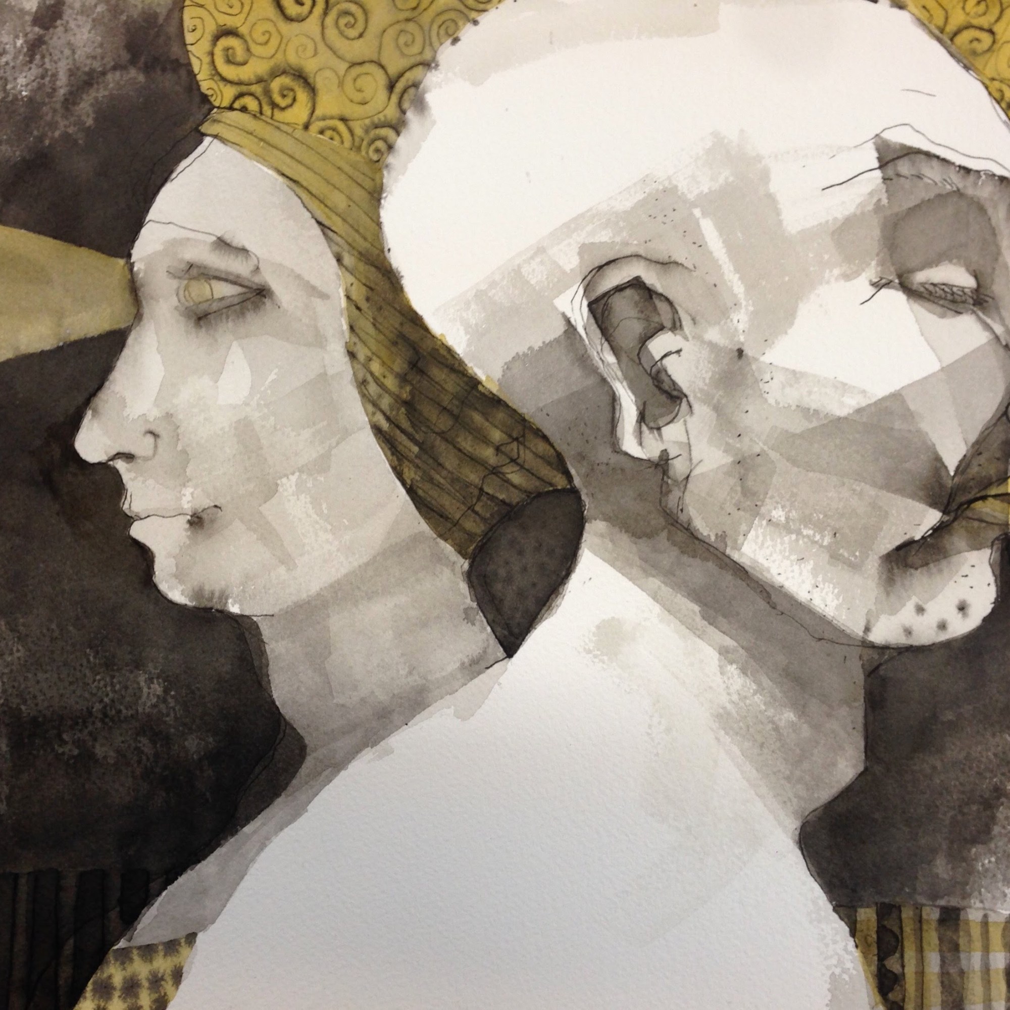 Thus, I love using ink to explore the emotions and to tell human sotries. Ah. Paper. Each type of paper has a will of its own. I feel as if two artists are stuggling to see whose story will be told.