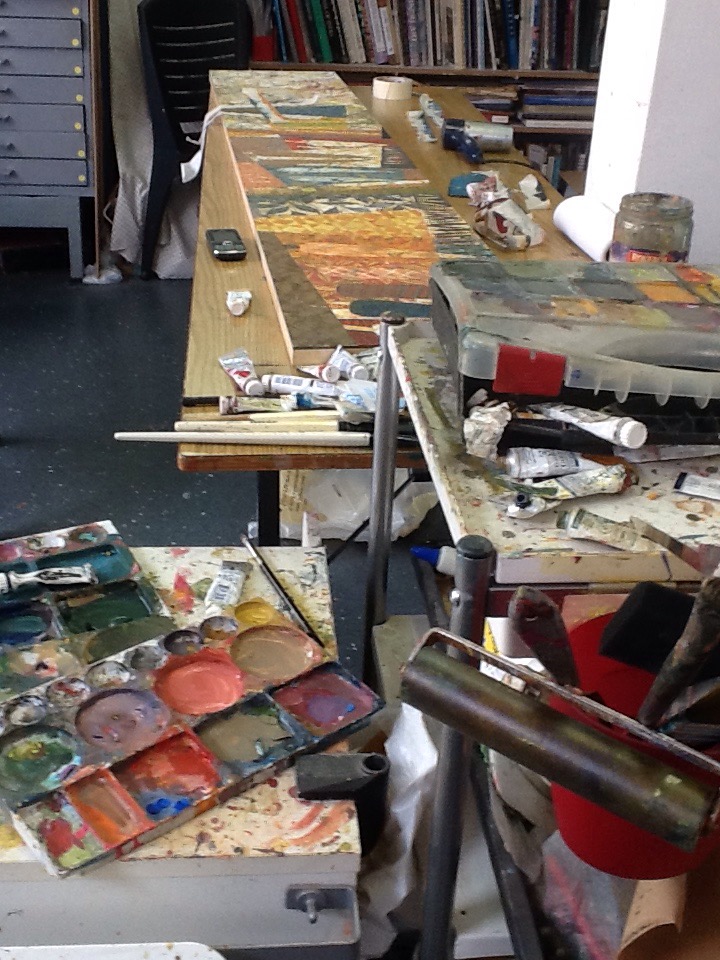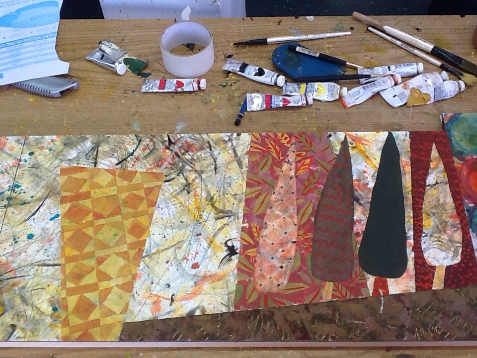 When I hear the protest “But I don’t know how to draw!” I hand students scrap paper and scissors and tell them to cut simple stencils. That way we get past their childhood comparisons to the project of the kid sitting next to them in art class, and begin learning about painting!