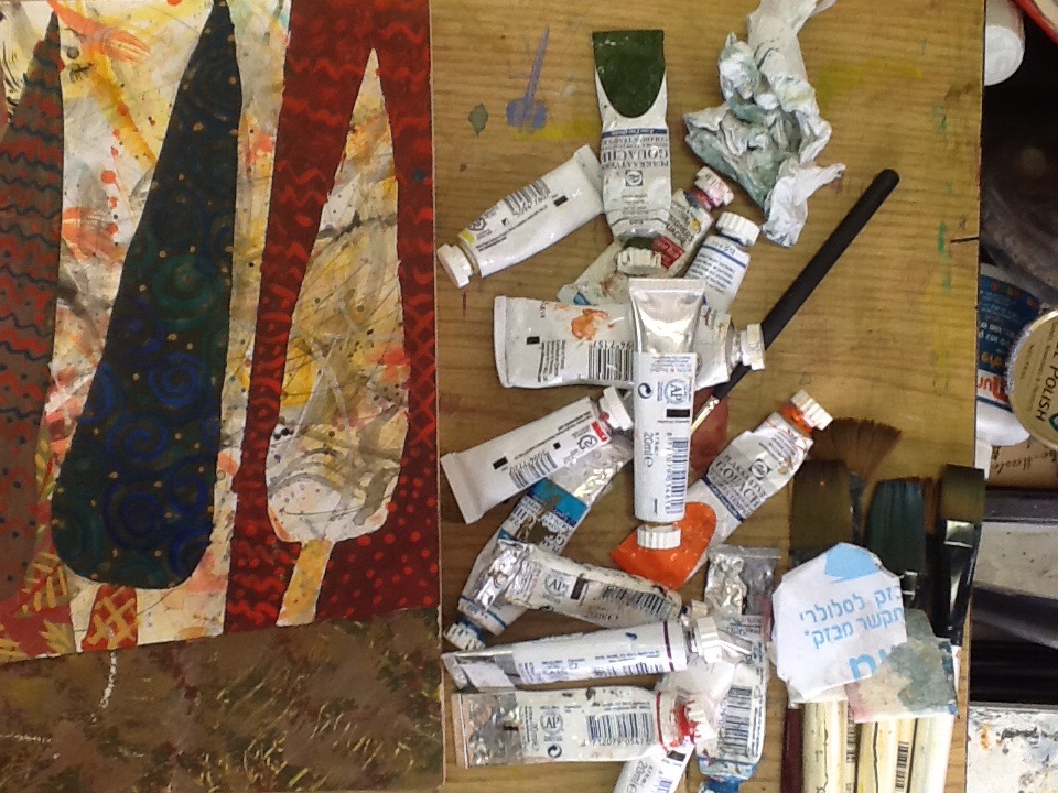 I am honored to participate in this years Jerusalem Biennale – in the group show “A Sense of Space, A Sense of Place, curated by my talented colleague Mallory Serebrin. The show is in a unique location – a century old Armenian villa, that served for half a century as a school for deaf children. The exterior is magnificent. The interior – reminds me of my artwork! The work is a polydych, of four panels, called “Common Cypress”, the botanical name of the Mediterranean cypress. In Hebrew – ברוש מצוי Each panel is named buy a line from a song of the Israeli cannon, revealing a strong connection to this unique place.