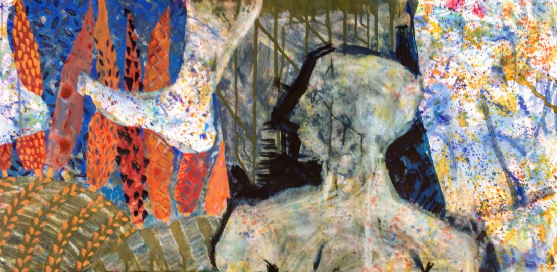 Gouache over mixed media, on a koalin coated panel. 41 x 66 cm.