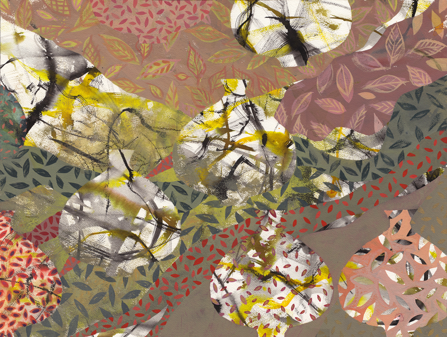 Gouache over mixed media, on a koalin coated panel. 41 x 66 cm.